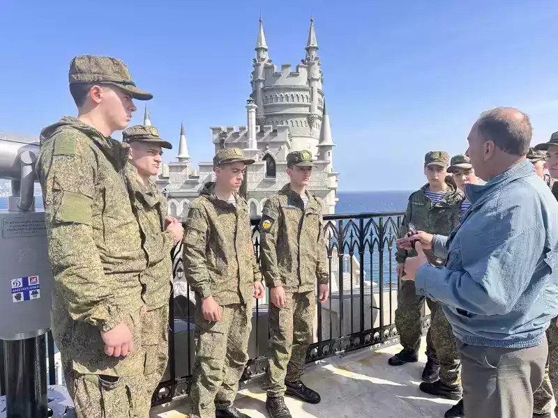 Александр Левин, заместитель директора дворца-замка, провел для военнослужащих Министерства обороны Российской Федерации, несущих службу в Крыму, проникновенный экскурс в историю этого судьбоносного события.