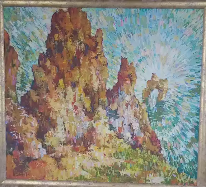 Камерные пейзажи С.Г. Пустовойта посвящены образу Коктебеля и личности «гения места» — М.А. Волошина. Склоны Карадага на полотнах В.А. Лещенко и Г.Н. Куриленко, горные мотивы О.П. Федотова завершают тему «киммерийского пейзажа» в крымском искусстве. Заместитель директора Симферопольского художественного музея Светлана Глазунова провела содержательную экскурсию о демонстрируемых в миниатюрных залах дворца-замка экспонатах выставки, рассказала о творческом пути Максимилиана Волошина.