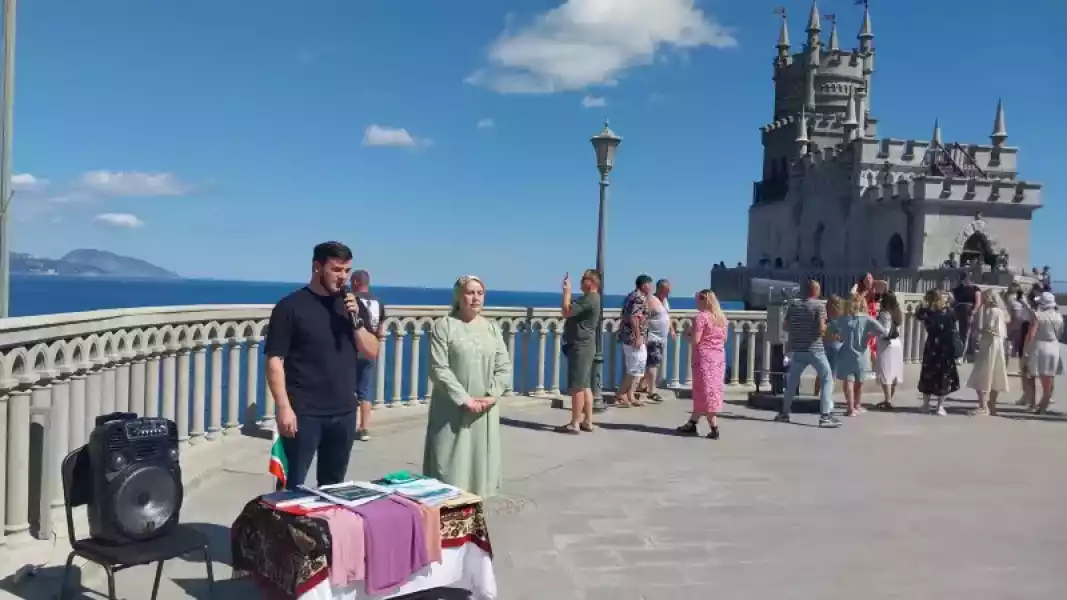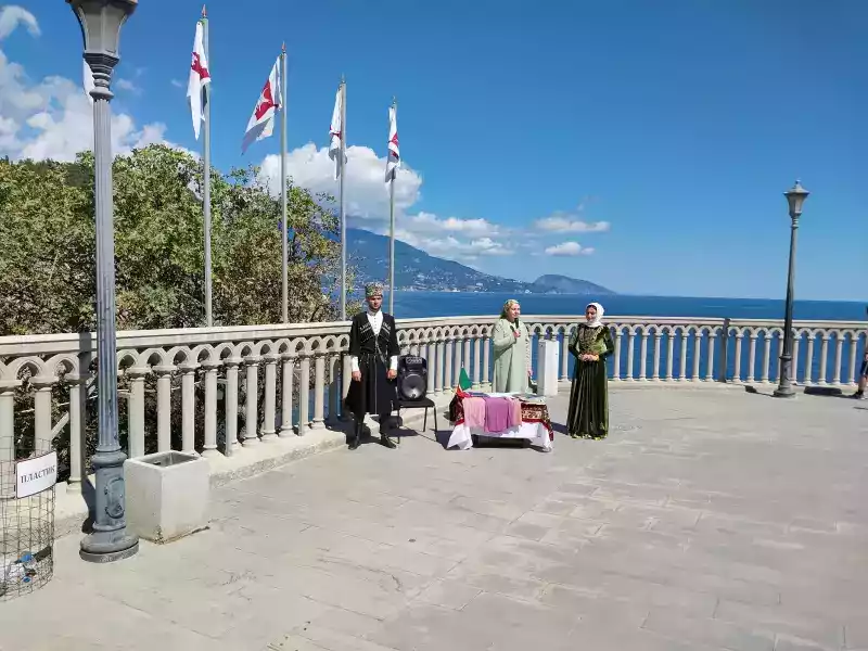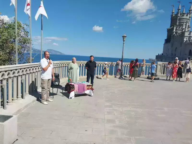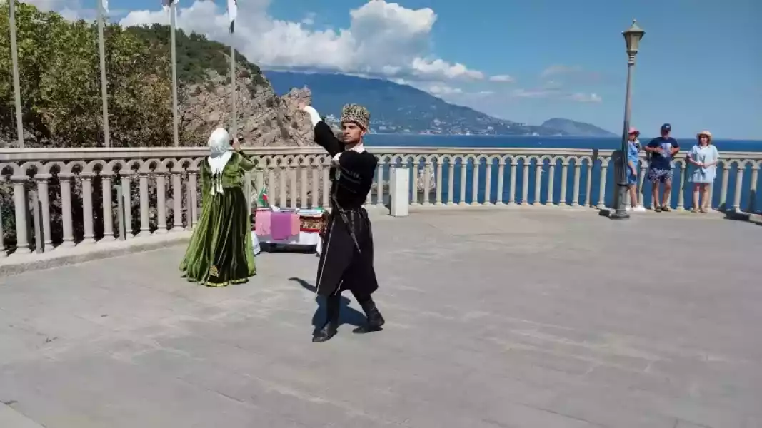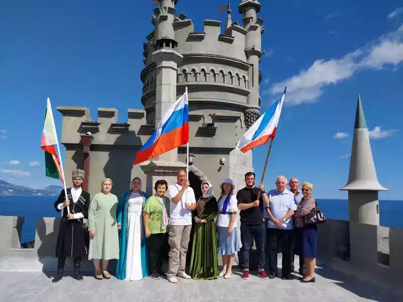 Представителями из Чеченской Республики был исполнен чеченский танец «Любимая Чечня», а исполнение зажигательной «Лезгинки» вызывало восторг у участников мероприятия и посетителей. Заместитель директора учреждения Александр Левин рассказал об истории самого узнаваемого архитектурного символа Крыма - Дворца-замка Ласточкино гнездо.