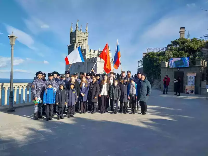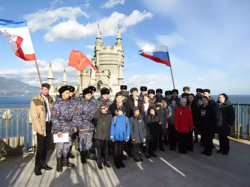 В окончании, этого запоминающегося для всех его участников мероприятия, военнослужащие, учащиеся и преподаватели сфотографировались на память об этом событии на фоне дворца-замка и на недавно отремонтированной смотровой площадке с государственными флагами России и Крыма и флагом Победы.