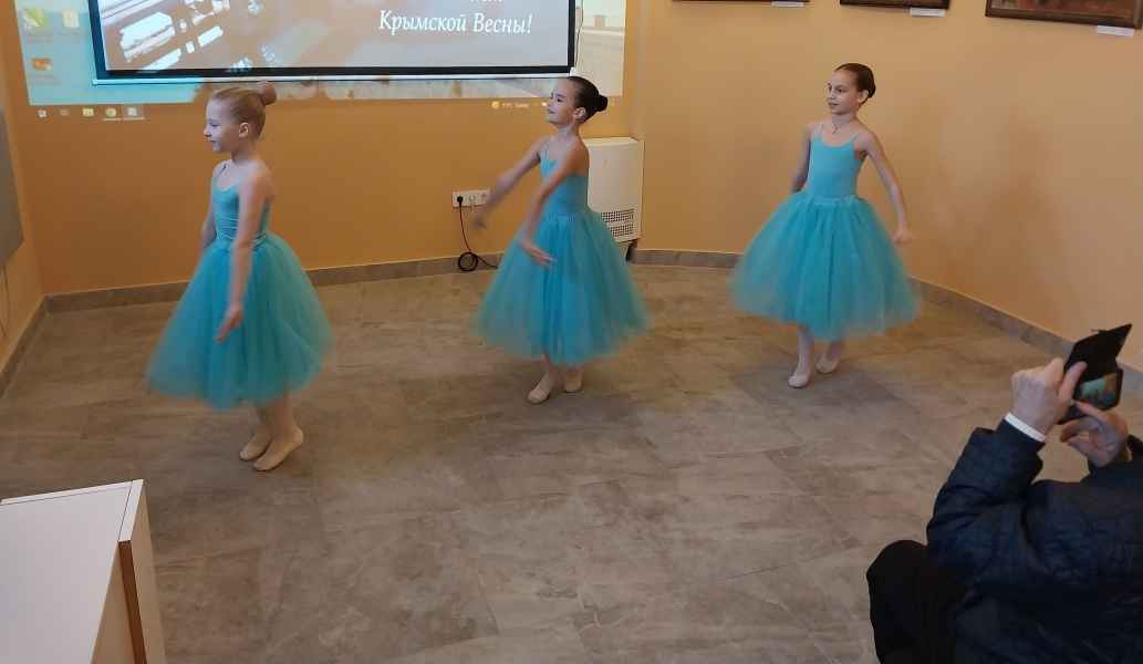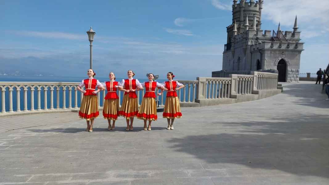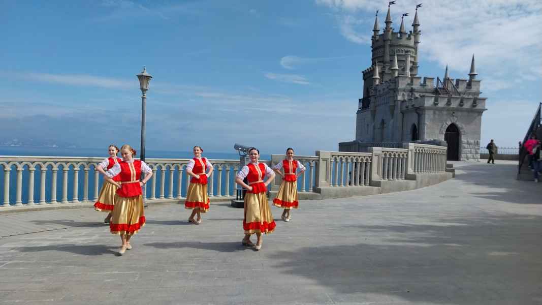 С праздничной, танцевальной программой перед заслуженными художниками Крыма: Элеонорой Щегловой, Григорием Алчиевым, Еленой Алчиевой, заслуженным работникам культуры Республики Крым Алексеем Зубаревым, директором "ЯЛТИНСКого ИСТОРИКО-ЛИТЕРАТУРНого МУЗЕя" Юлии Рудник и посетителями «Дворца-замка «Ласточкино гнездо» выступили участницы хореографического коллектива «Звездный дождь» пгт Симеиз.