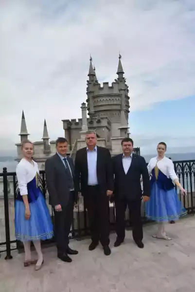 Почетным гостям мероприятия заместитель директора «Дворца-замка «Ласточкино гнездо» Александр Левин рассказал историю дворца-замка и о недавно завершенной реконструкции- реставрации по Федеральной целевой программе.
