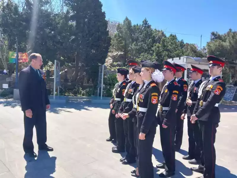 Заместитель директора «Дворца- замка» Александр Левин от администрации музея поблагодарил кадетов за бравые и показательные выступления, а кадета Александра Коломийца за прекрасно исполненную песню «И грудью мы встанем», которая никого не оставила равнодушным. Александр Левин для кадетов и военнослужащих в/ч 6919 Россгвардии провел экскурсию по истории замка, особый акцент сделав на экспозиции, посвященной Дню Победы «Артефакты военных лет» предоставленную Ялтинским коллекционером – антикваром Николаем Кокоревым.
