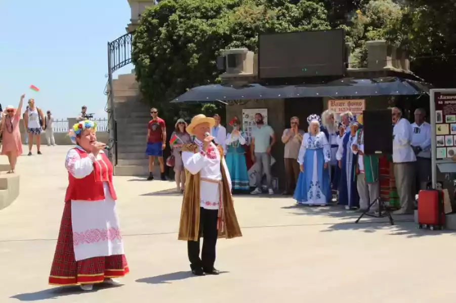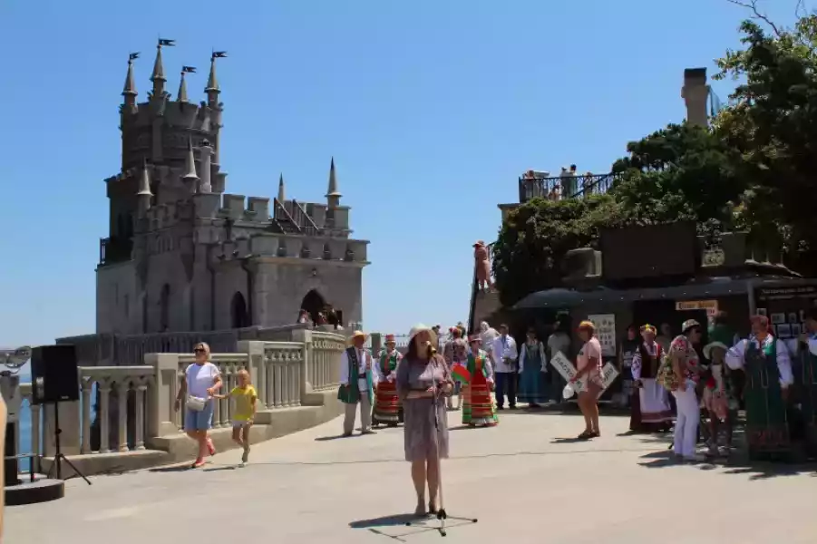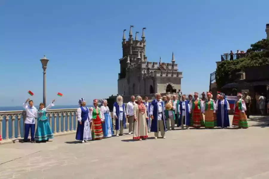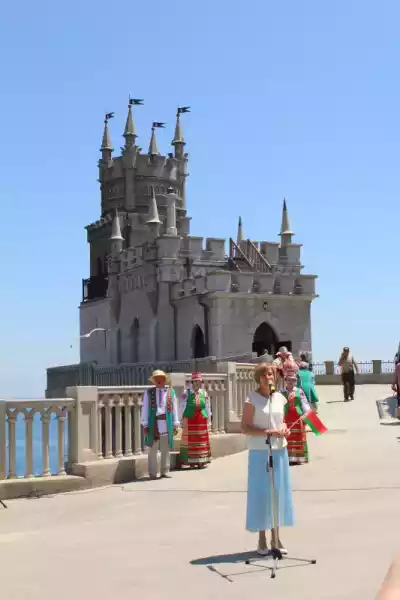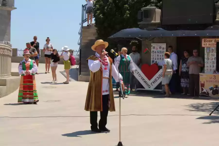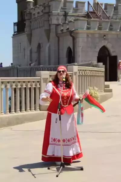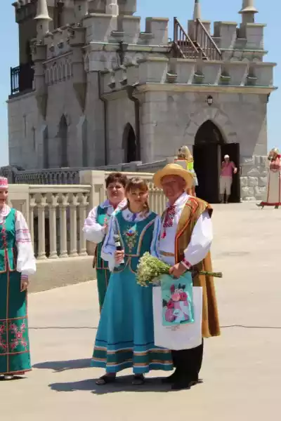 Посетители самой узнаваемой достопримечательности Крыма с большим удовольствием слушали мелодичные белорусские песни и любовались национальными костюмами выступающих. Народный вокальный ансамбль «Три криницы» ( руководитель Иван Кечин) , вокальная студия «Мелодика» ( руководитель Татьяна Монкене), коллективы Белорусского общества из Севастополя «Белая Русь» и «Натхненне» ( руководитель Наталья Жилкина), заслуженный работник культуры РК, председатель национально- культурной автономии белорусов Алушты «Сябрына» Виталий Бартохов выступил как соло, так и в дуэте с Анной Шестопаловой ( гурт белорусской песни «Гостинец»). В торжественной обстановке участники концерта поздравили знатока родной культуры, традиций и языка, замечательного исполнителя белорусских стихов и песен Виталия Бартохова который в этот день свой день рождения встречал участвуя в таком достойном мероприятии.