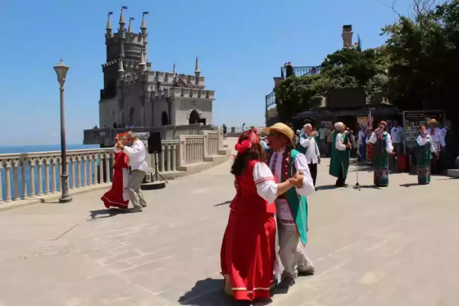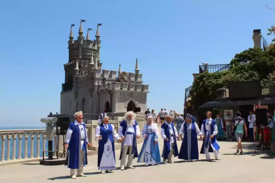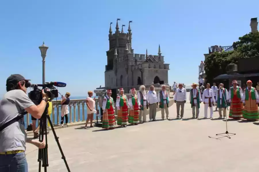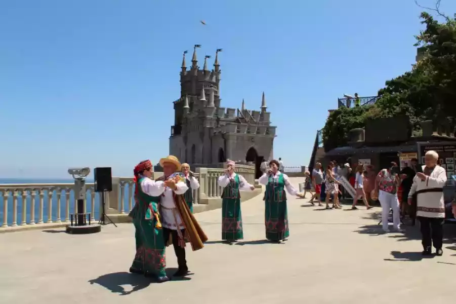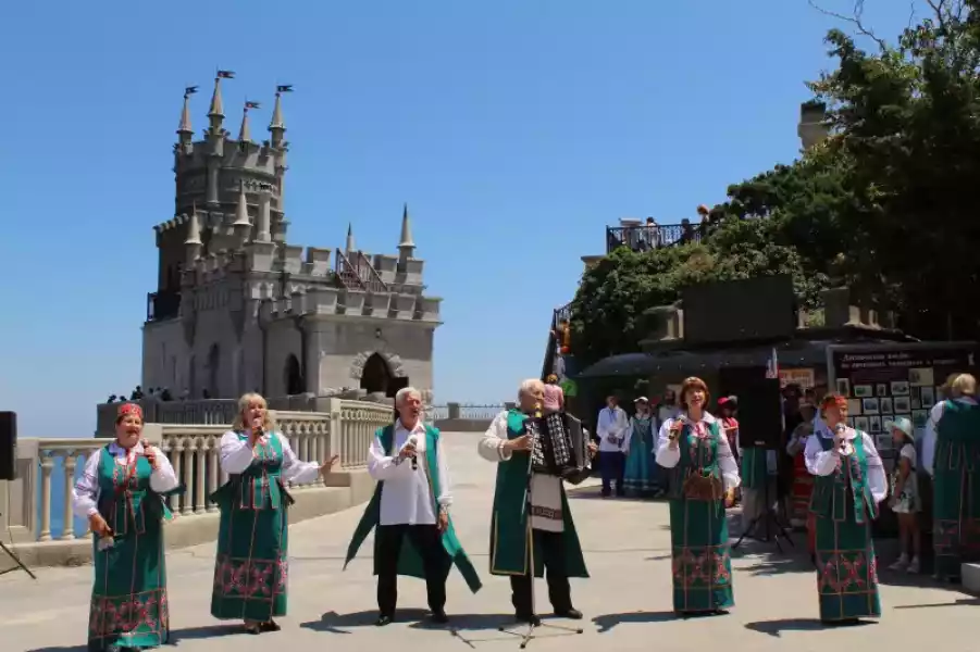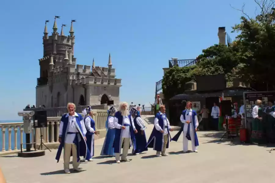Посетители самой узнаваемой достопримечательности Крыма с большим удовольствием слушали мелодичные белорусские песни и любовались национальными костюмами выступающих. Народный вокальный ансамбль «Три криницы» ( руководитель Иван Кечин) , вокальная студия «Мелодика» ( руководитель Татьяна Монкене), коллективы Белорусского общества из Севастополя «Белая Русь» и «Натхненне» ( руководитель Наталья Жилкина), заслуженный работник культуры РК, председатель национально- культурной автономии белорусов Алушты «Сябрына» Виталий Бартохов выступил как соло, так и в дуэте с Анной Шестопаловой ( гурт белорусской песни «Гостинец»). В торжественной обстановке участники концерта поздравили знатока родной культуры, традиций и языка, замечательного исполнителя белорусских стихов и песен Виталия Бартохова который в этот день свой день рождения встречал участвуя в таком достойном мероприятии.