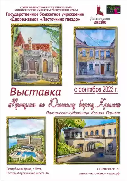 Экспозиция посвящена красоте и неповторимости природных камней- самоцветов. Во Дворце-замке «Ласточкино гнездо» на регулярной основе проводятся выставки крымских художников и мастеров.