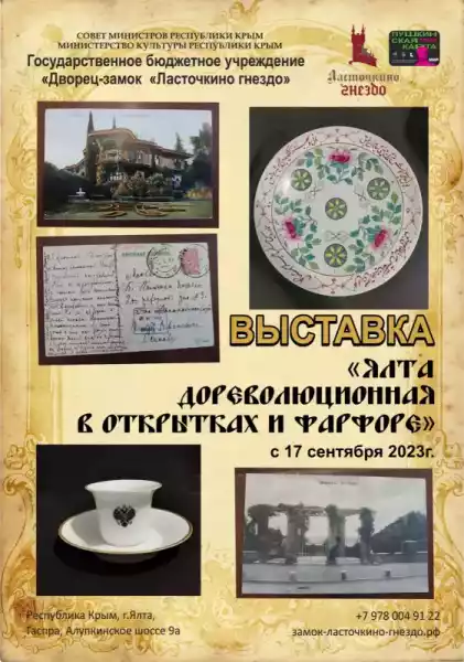 С 17 сентября 2023 г. в "Дворце - замке "Ласточкино гнездо" открылась выставка: «Ялта дореволюционная в открытках и фарфоре»
