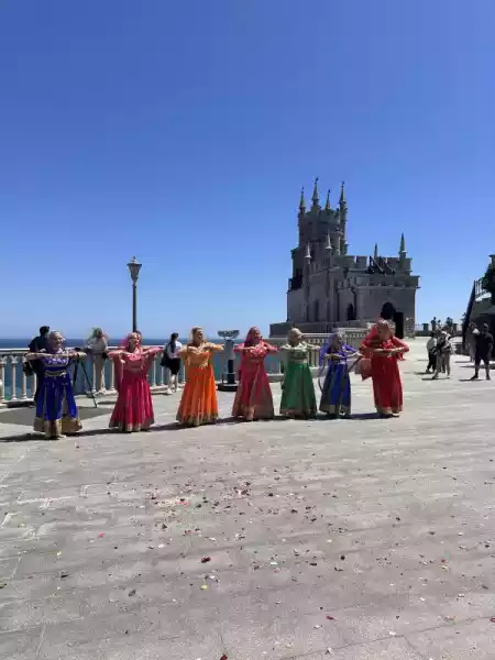 Образцовый ансамбль танца народов Востока «Нартаки» и коллектив «Роксолана» филиала № 4 Кореизского поселкового клуба МБУК «ЯЦКС» - руководитель коллектива Светлана Тихонец (Рошан), заведующая Ирина Сенич, театр индийского танца «Лакшми Лила» из г. Севастополь, феодосийский коллектив индийского танца «Арти Бхарат Джан» подарили многочисленным посетителям самой известной достопримечательности Крыма красочный праздник.