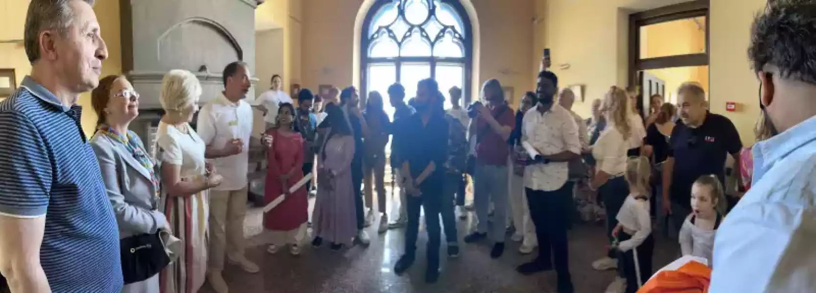 Заместитель директора дворца-замка – Александр Левин от администрации и коллектива учреждения поблагодарил участников за прекрасное выступление творческих коллективов, а почётных гостей из Республики Индия за участие в красочном мероприятии, отметив важность изучения и популяризации истории и культуры народов: Великой Индии, Великой России.