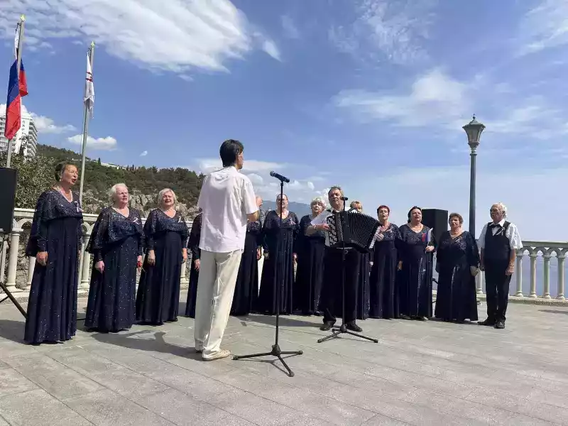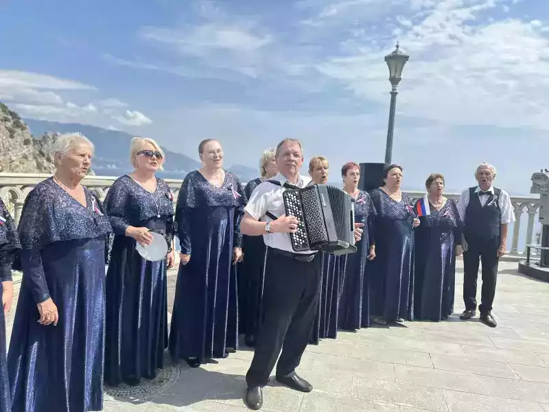 Народный хор ветеранов «Славянка» исполнил песни «Матушка Россия», «Хлеб, да соль», «Берёзы», «Не пыли дорога». Зоя Легостаева (вокалист Алупкинского городского Дома культуры») выступила с песней «Гляжу в озера синие» (из культового советского сериала «Тени исчезают в полдень»), Виктор Глигор (руководитель народного хора «Славянка») спел песню «Заповедные места», вокалист Олег Макаров исполнил песню «В краю магнолий», Елена Гурименко-Еленчина, автор и исполнитель, прочитала свое стихотворение «Крым» и спела песню «Широки просторы земли-матушки», завершила концерт Наталья Малышева (вокалист Алупкинского городского Дома культуры») с песнями «С Праздником добрые люди» и «Россия».