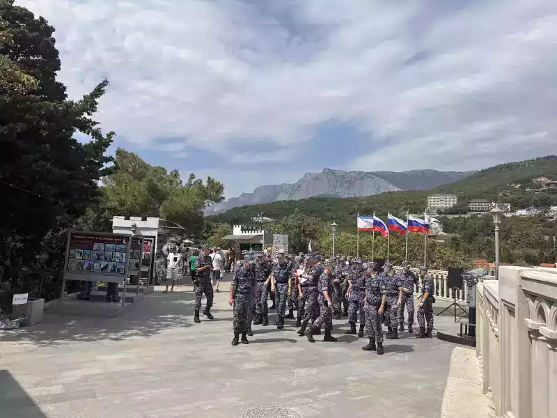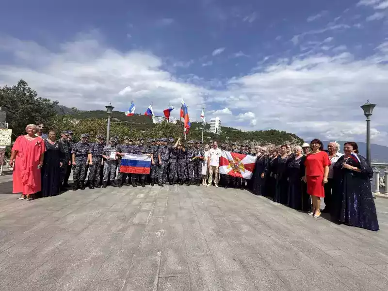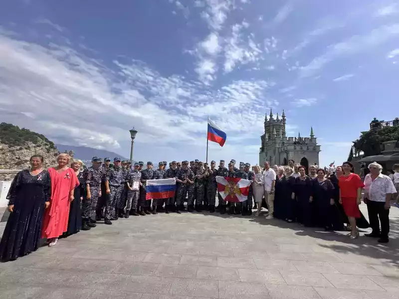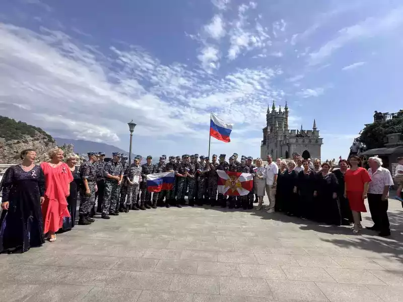Посетители архитектурно-выставочного комплекса «Ласточкино гнездо» и военнослужащие росгвардии с благодарностью и аплодисментами встречали каждое выступление артистов.