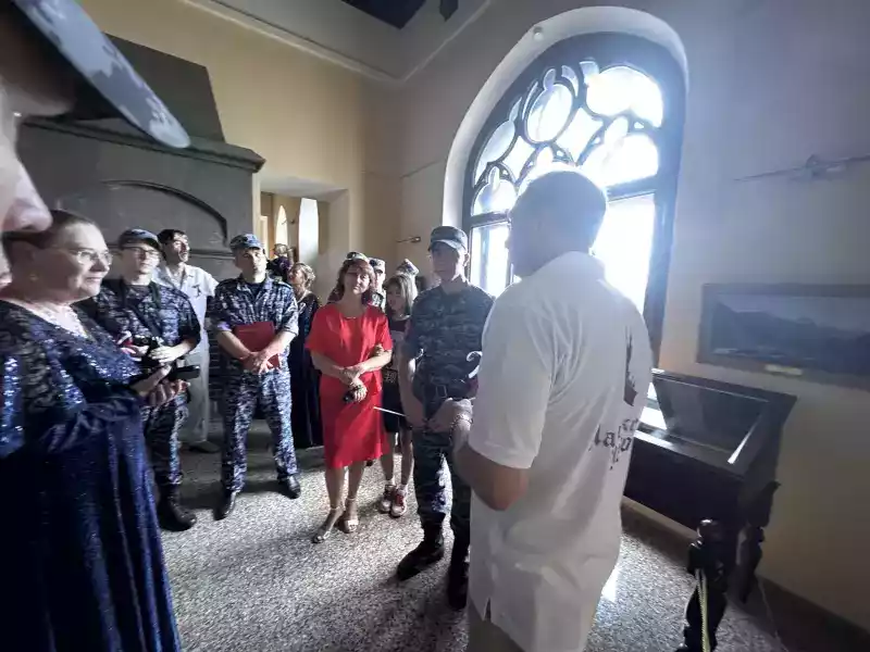 В завершении мероприятия заместителем директора учреждения Александром Левиным был проведен экскурсионный рассказ об истории визитной карточки Крыма – Дворца-замка «Ласточкино гнездо» и об экспонируемой выставке «Сказка странствий» (Проводимой совместно с Симферопольским художественным музеем).